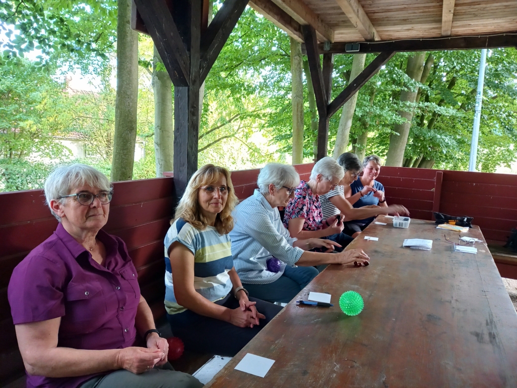 Wir lernten, dass nicht das Erlernen einer neuen Fremdsprache, das Aneignen neuer Kenntnisse für unserer Gedächtnis gut ist, sondern moderate Bewegung ein Schlüssel für das Gehirntraining ist. Auch im Alter mit körperlichen Einschränkungen ist es gut, z.B. mit Fingerübungen „beweglich“ zu bleiben. Unsere Gehirnzellen können sich immer wieder erneuern; das ist keine Frage des Alters. Und wichtig zu wissen: Wir sollten uns also bewegen, wo und wie immer es möglich ist. Wichtig ist dabei, dass wir Freude haben. Alle Teilnehmerinnen waren guter Dinge und stärkten sich nach dem „Training“ mit einem Imbiss ihrer Wahl.