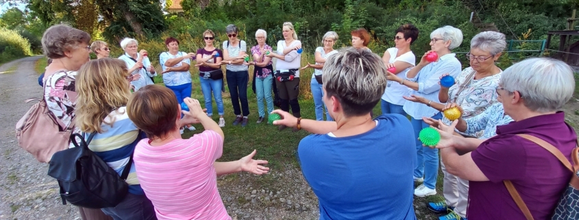 Wir lernten, dass nicht das Erlernen einer neuen Fremdsprache, das Aneignen neuer Kenntnisse für unserer Gedächtnis gut ist, sondern moderate Bewegung ein Schlüssel für das Gehirntraining ist. Auch im Alter mit körperlichen Einschränkungen ist es gut, z.B. mit Fingerübungen „beweglich“ zu bleiben. Unsere Gehirnzellen können sich immer wieder erneuern; das ist keine Frage des Alters. Und wichtig zu wissen: Wir sollten uns also bewegen, wo und wie immer es möglich ist. Wichtig ist dabei, dass wir Freude haben. Alle Teilnehmerinnen waren guter Dinge und stärkten sich nach dem „Training“ mit einem Imbiss ihrer Wahl.